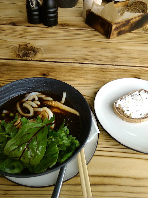 Kogu oma reisi rägastikus käisime ka Lennusadamas Viikingite näitust vaatamas ja tahtsime minna pärast einestama kohvikusse Klaus. Mereäärne pop koht oli rahvast tulvil ja tühjal terrassil oleks olnud istuda tuuline, kuna seltskonnas oli ka mehe vennapoeg. Suundusime siis lähedal asuvasse restoran-kohvikusse Wu Wei, kus laiutas tühjus ja meie väikse seltskonna marakratt sai vabalt liikuda ja asju uurida. Wu Wei on rahuliku meele koht ja peakokk Aare Sild, kui käis toidu maitse ja rahulolu kohta uurimas, ütles, et last ei pea keelama. Nii lendasid meil seal paberlennukid ja oli rahulik omaette head, maitsvat toitu nautida. Mulle meeldis, et kõik oli päris. Polnud mingeid külmutatud köögivilju, mida ikka ja sageli meie toidukohtades kohtad. Krevette võis käe vahelt süüa, mille kaste oli jumalik ja köögivili polnud liiga krõmps. Pärast õhetasime mõnusalt, nagu oleksime veini joonud, kuigi seda ei teinud. Salapärased tulised aasiapärased maitsed. Teinekordki läheks sinna uudistama, et teada saada, kas pelmeenivalik ja kevadrullid maitsevad ka ehedalt.